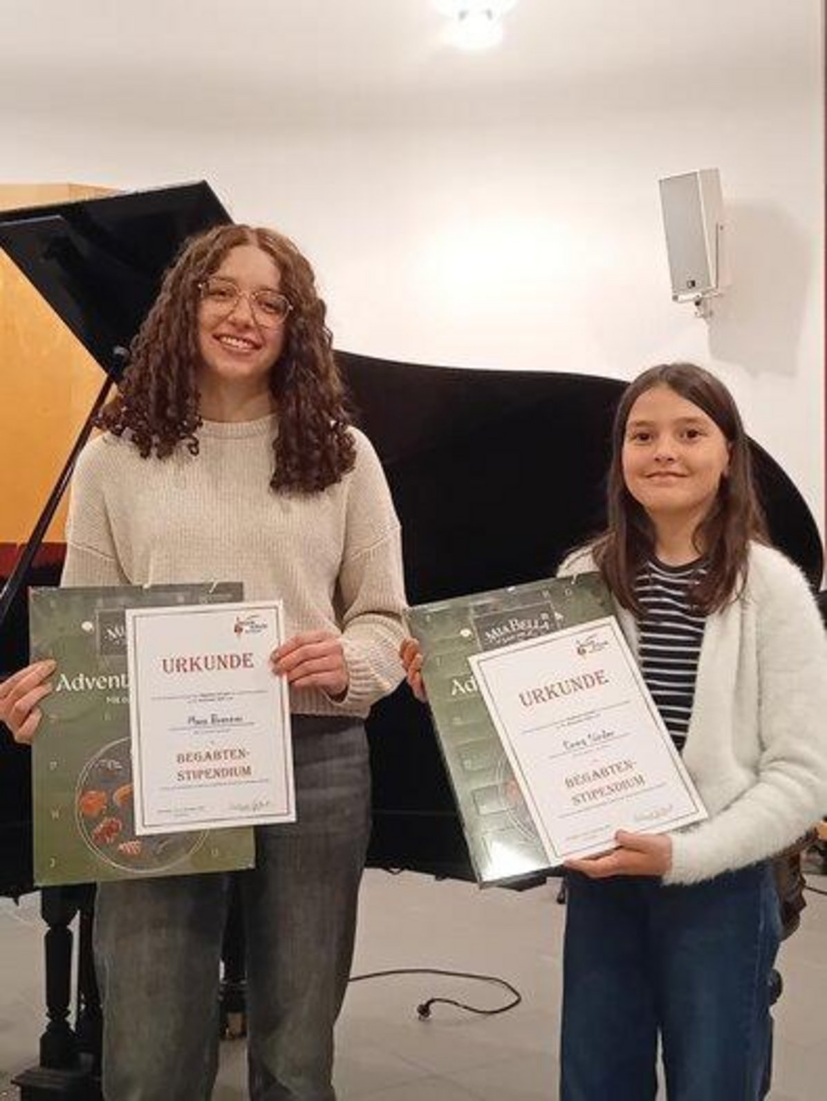 Beide Schülerinnen dürfen sich über ein Stipendium freuen und erhalten im laufenden Schuljahr 15 Minuten mehr Unterricht, um noch intensiver zu arbeiten und sich noch tiefer mit der Musik auseinanderzusetzen.