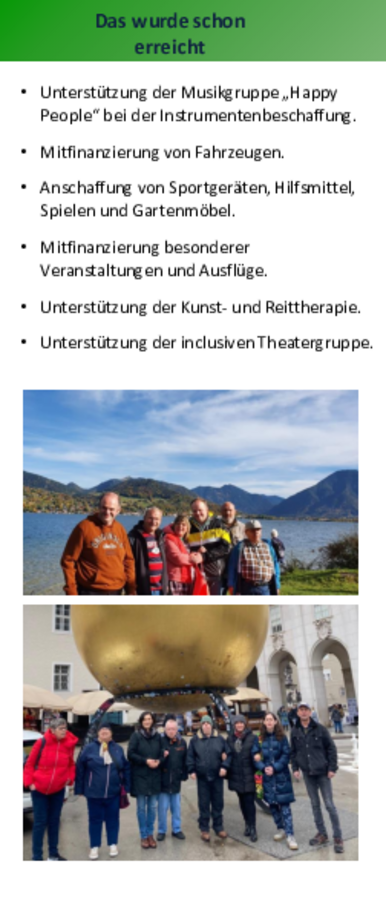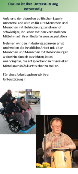 - Werben für ein besseres Verständnis der Öffentlichkeit gegenüber den besonderen Bedürfnissen der Menschen, die in der Samariterstiftung in Neresheim leben.